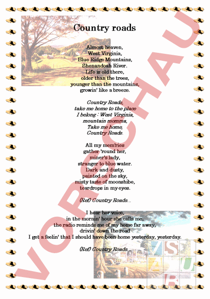 Arbeitsblatt: Song: Country Roads