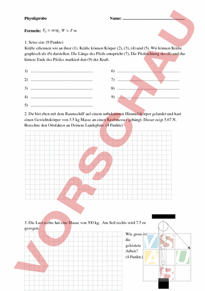 Arbeitsblatt: Test Kraft, Arbeit