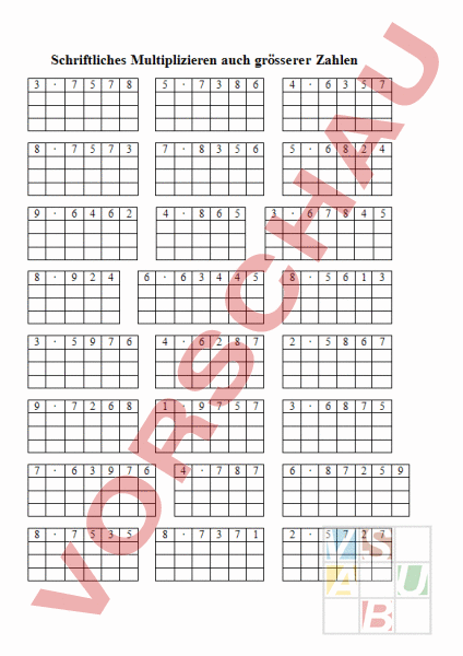 Arbeitsblatt: schriftliches Multiplizieren auch grösserer Zahlen
