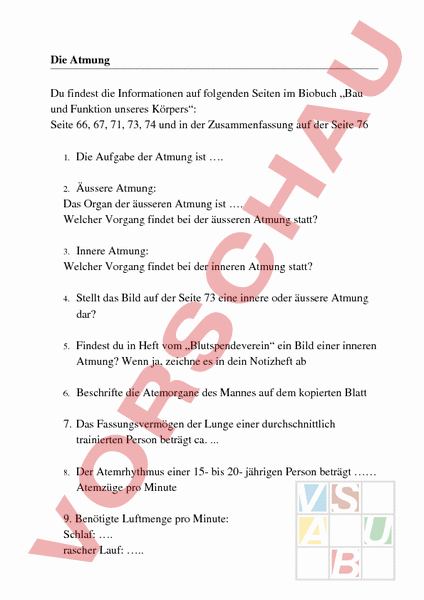 Arbeitsanweisungen zum Thema Atmung.