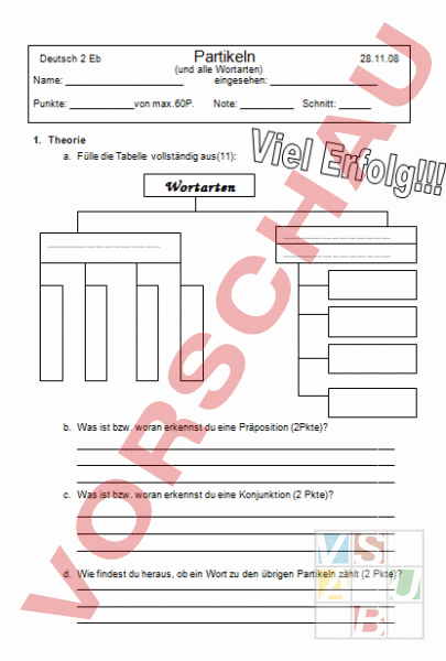 Prüfung Partikel und alle Wortarten