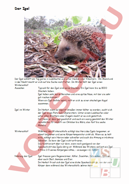 Arbeitsblatt: Igel