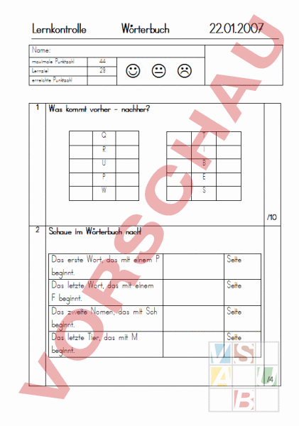 Lernkontrolle Wörterbuch für die 2. oder 3. Klasse