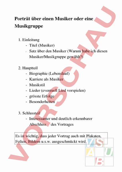 Arbeitsblatt: Vortrag über einen Musiker
