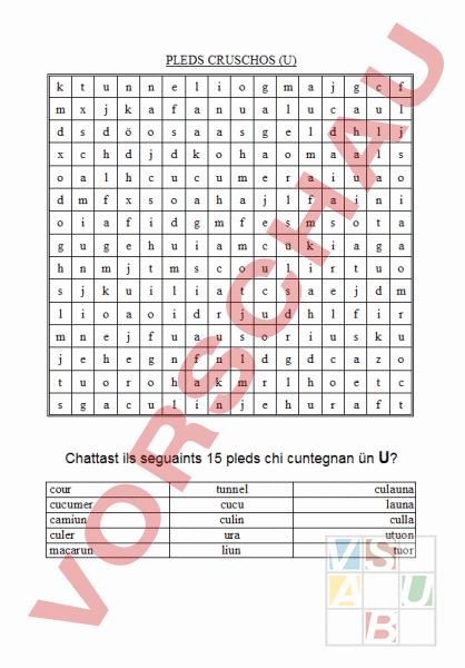 PLEDS CRUSCHOS (U) ö ü Chattast ils seguaints 15 pleds chi cuntegnan ün U? cour cucumer camiun culer macarun tunnel cucu culin ura liun culauna launa culla utuon tuor