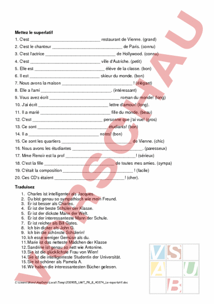 Arbeitsblatt: Le superlatif