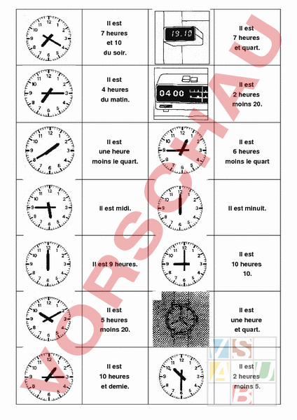 Arbeitsblatt: l'heure Uhrzeit Domino