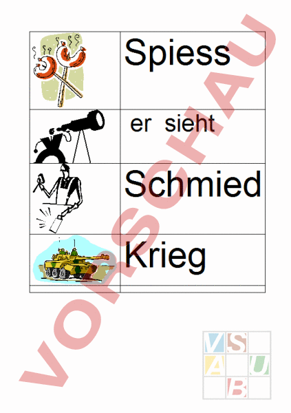 Wortbild-kartchen für die Buchstabeneinführung.