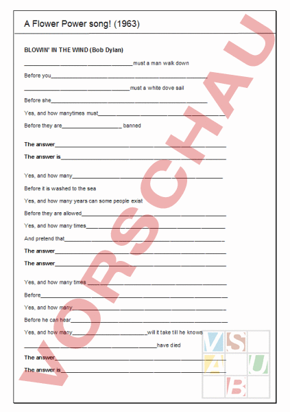 Arbeitsblatt: Songtext zu "Blowin in the wind"