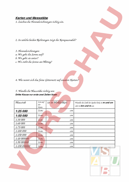 Arbeitsblatt: Karten und Massstäbe