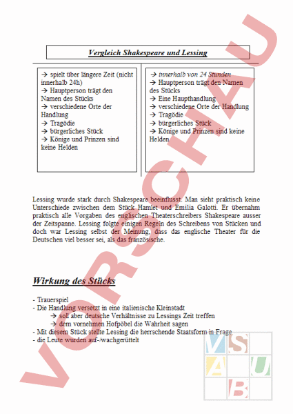 Arbeitsblatt: Shakespeare und Lessing im Vergleich