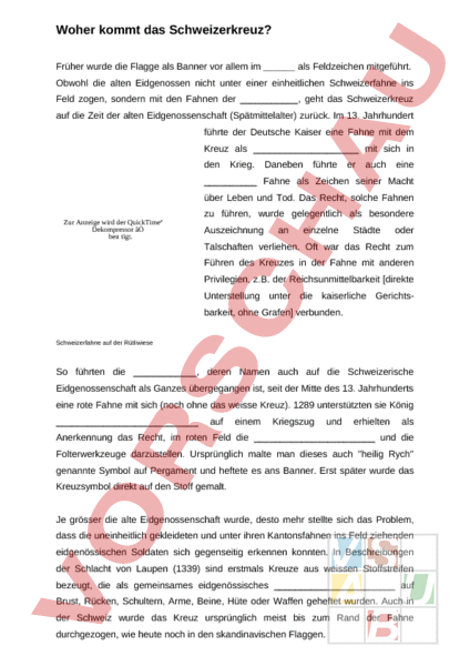 Lückentext zur Herkunft des Schweizer Kreuzes