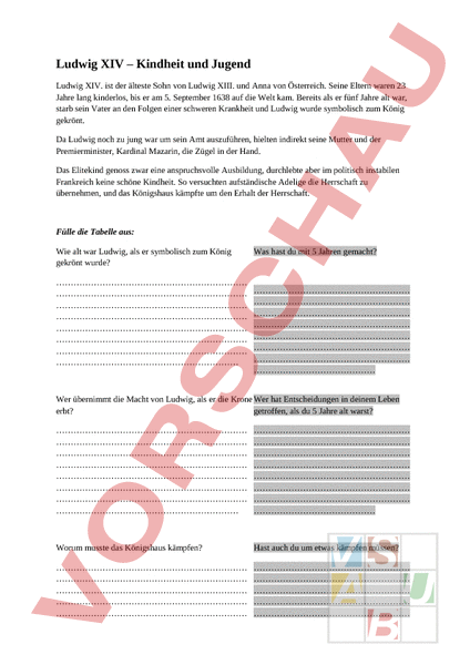 Arbeitsblatt: Ludwig XIV. Teil1