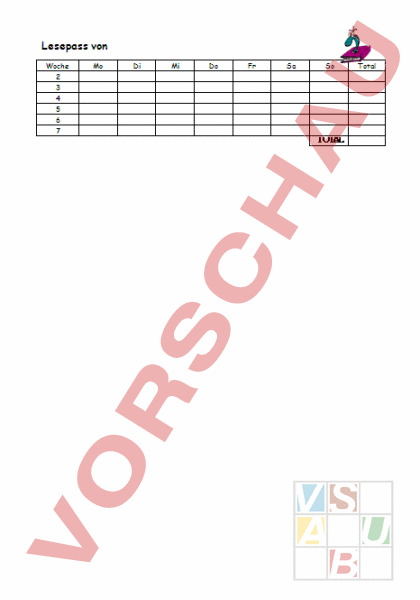 Lesepass von Woche 2 3 4 5 6 7 Mo Di Mi Do Fr Sa So TOTAL Total