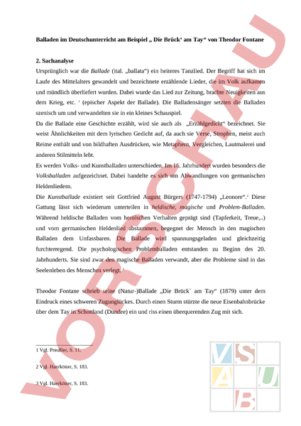 Unterrichtsplanung: Brück' am Tay"von Theodor Fontane mit Sachanalyse