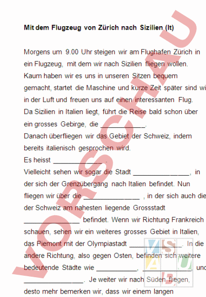 Ein Lückentext der eine Flugreise von Zürich nach Sizilien beschreibt. GG-Thema Italien