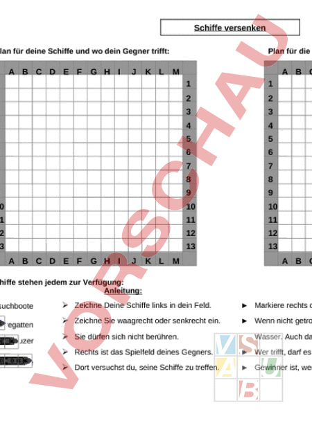 Arbeitsblatt: Schiffe versenken