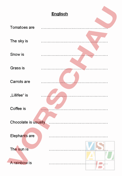 Englisch Tomatoes are The sky is Snow is Grass is Carrots are „Lillifee is Coffee is Chocolate is usually Elephants are The sun is rainbow is