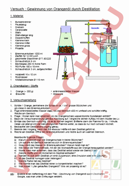 Arbeitsblatt: Gewinnung von Orangenöl