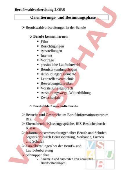 Arbeitsblatt: Übersicht Berufswahlvorbereitung 2.ORS