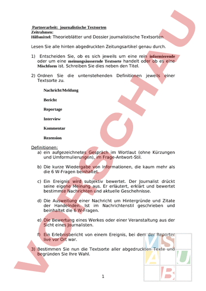 dies ist eine längere, Übugnstest-artige Aufgabe zur Bestimmung der journalistischen Textsorten.