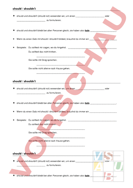 Arbeitsblatt: Grammatikblatt zu should / shouldn't