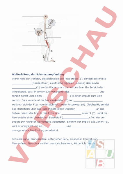 Arbeitsblatt Weiterleitung der Schmerzempfindung