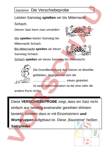 Arbeitsblatt: Satzlehre - Die Verschiebeprobe
