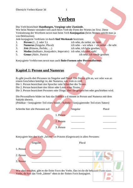 Arbeitsblatt: Übersicht Verben