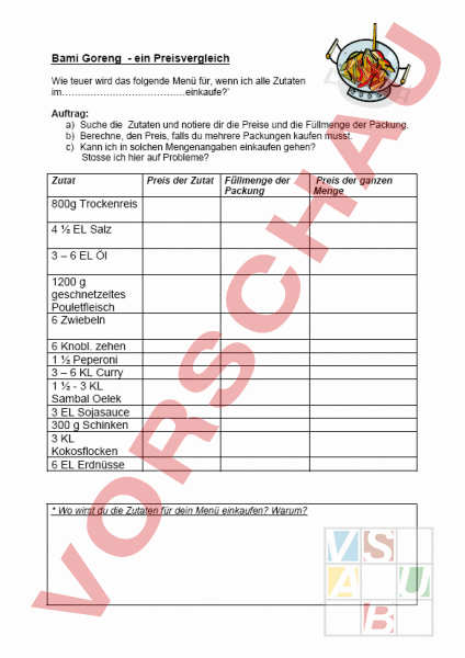 Arbeitsblatt: Preisvergleich