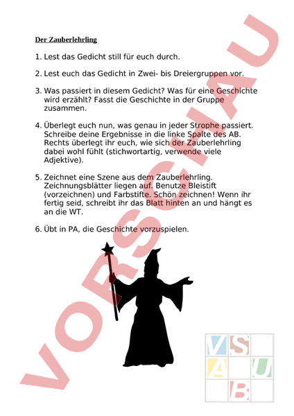 Arbeitsaufträge zum Gedicht "Der Zauberlehrling"