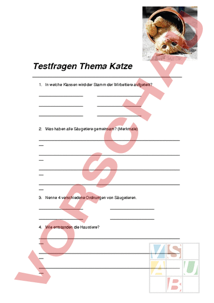 Arbeitsblatt: Testfragen Katze