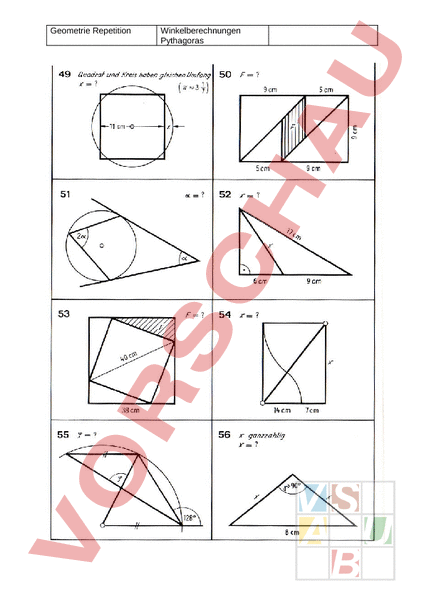 Geometrie Repetition Winkelberechnungen Pythagoras Geometrie Repetition Winkelberechnungen Pythagoras