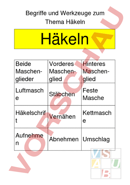 Arbeitsblatt: Werkzeuge und Begriffe zum Häkeln