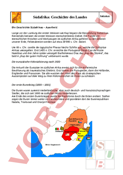 Arbeitsblatt: Südafrika: Geschichte
