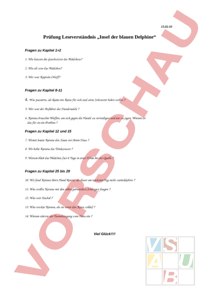 Arbeitsblatt: Insel der blauen Delphine
