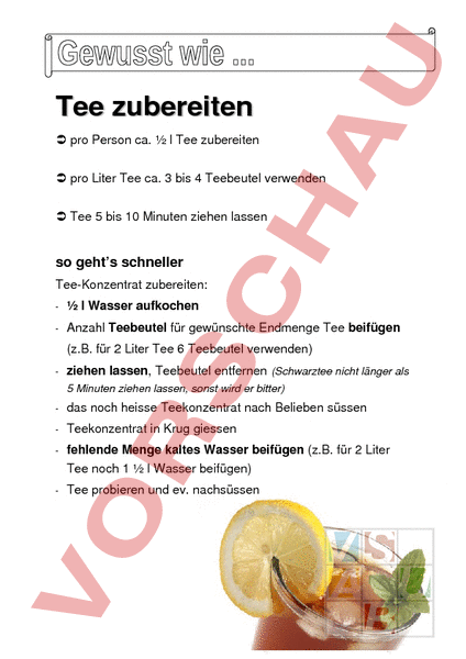"Gewusst wie" zum ausdrucken, vergrössern und laminieren, Hinweise wie Teekonzentrat zubereitet wird