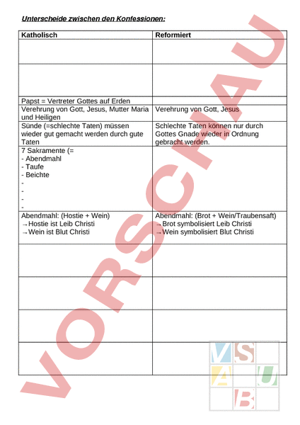 Arbeitsblatt: Reformation