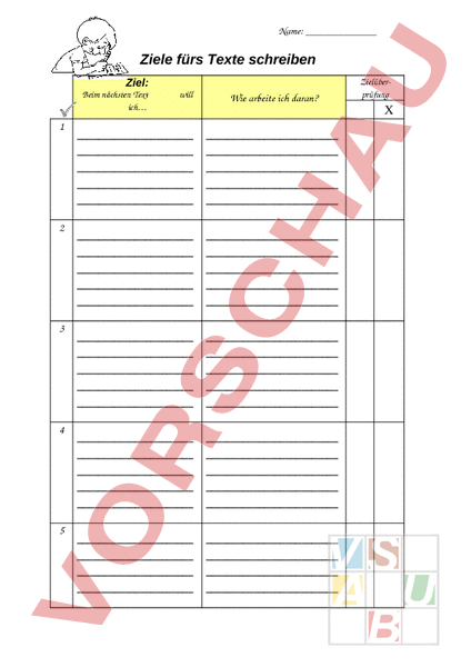 Auf diesem AB kann sich der Schüler individuelle Ziele setzen fürs nächste Texte schaffen