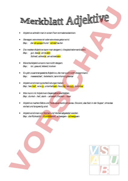 Arbeitsblatt: Merkblatt Adjektive