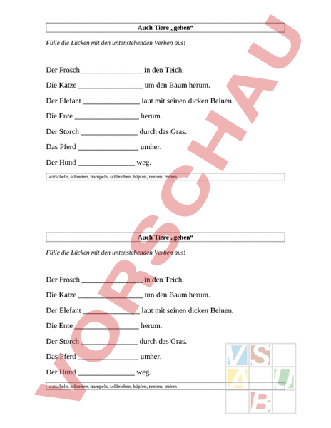 Arbeitsblatt: Tiere gehen/wortfeld gehen