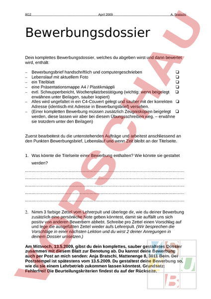 Arbeitsblatt: Bewerbungsdossier
