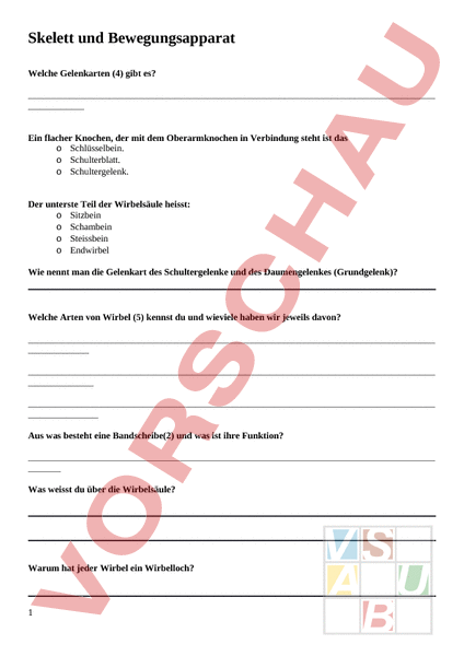 Arbeitsblatt: Bio Bewegungsapparat