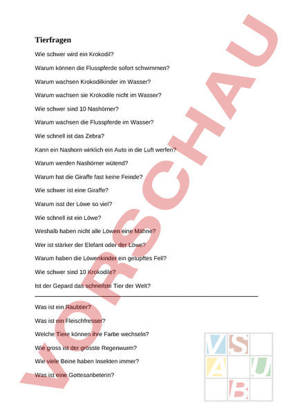 Arbeitsblatt: Tierfragen
