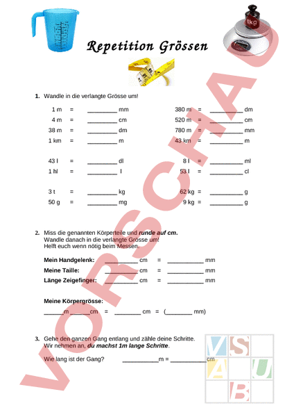 Arbeitsblatt: Repetition aller Grössen (5. Klasse)