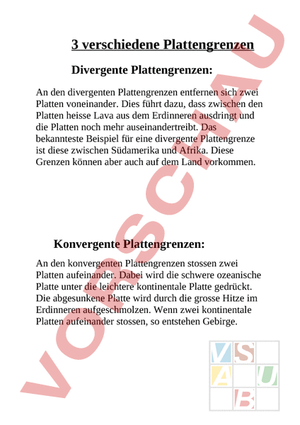 Arbeitsblatt: 3 verschiedene Plattengrenzen