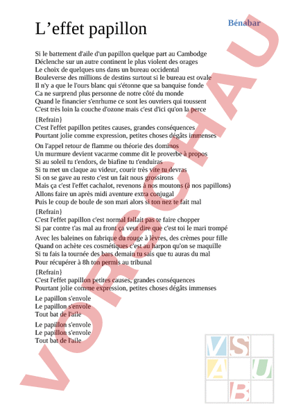 Arbeitsblatt: Bénabar - L'effet papillon