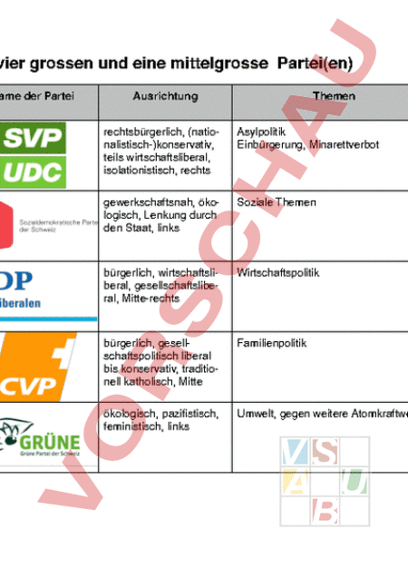 Arbeitsblatt: Die Parteien der Schweiz