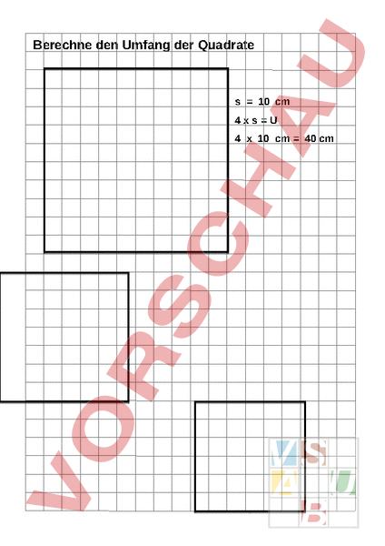 Berechne den Umfang der Quadrate 10 cm 4xsU 4 10 cm 40 cm Berechne den Umfang der Quadrate