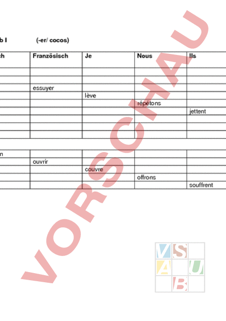Le Verb Ⅰ Deutsch (er/ cocos) Französisch Je Nous Ils Participe passé (jai/ je suis) Imparfait (je) lieben essuyer lève répétons jettent Jai bavardé Je cherchais gehen pflücken ouvrir couvre offrons souffrent